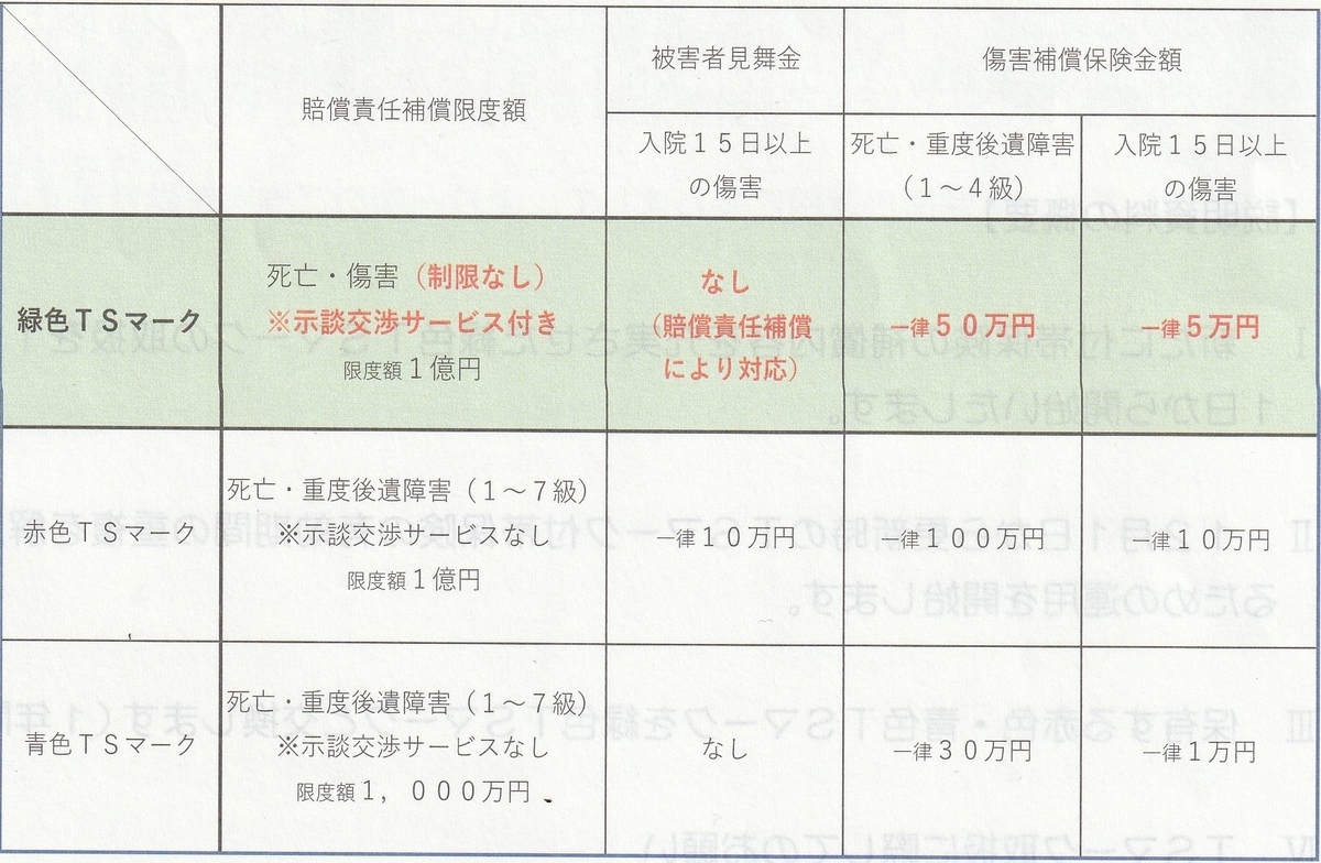 従来の赤TS 青TSとは賠償金額以外で異なる点があるので注意していただきたい。
