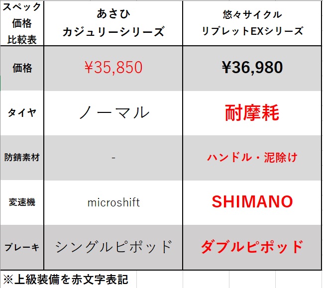 例えば通学自転車の入門車種で比較すると